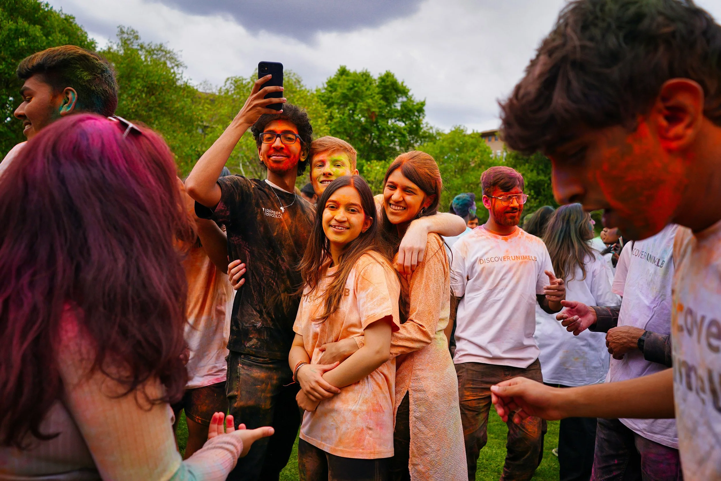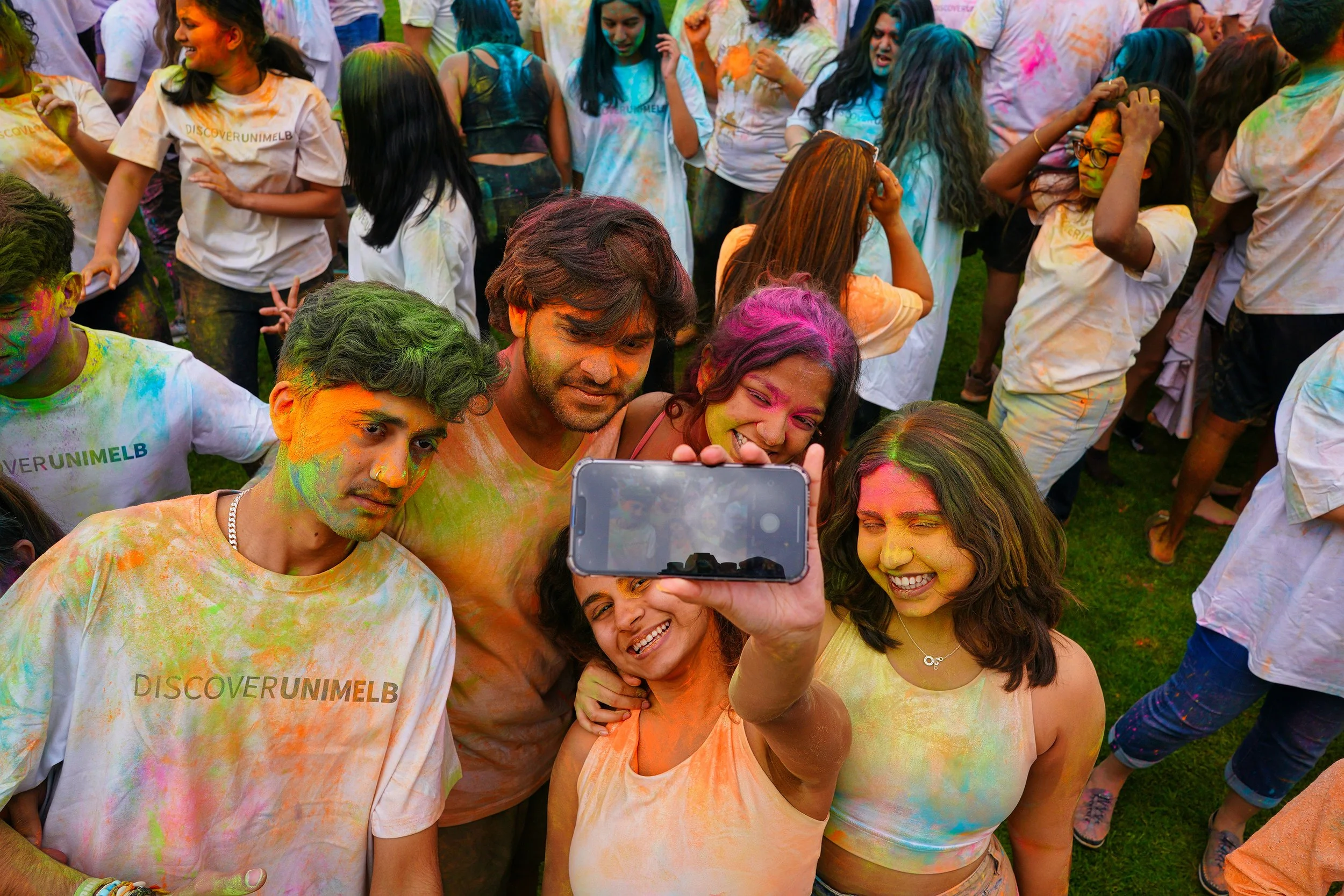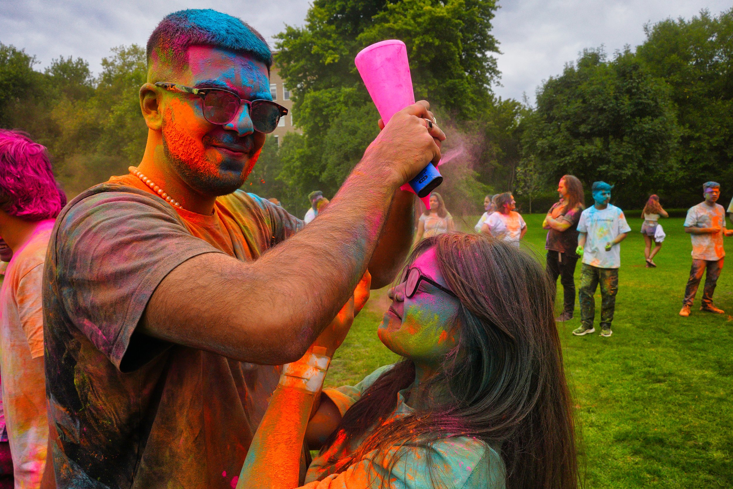 An explosion of colour, joy, and togetherness, celebrating the spirit of the Holi Festival.